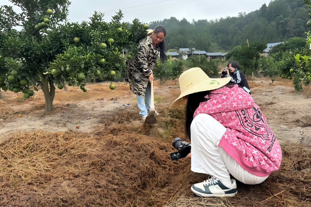 本网讯 (乡村振兴工作队 莫阳)当青春创意与乡土中国相遇,会碰撞出怎样的火花?在湖南女子学院驻熟坪社区乡村振兴工作队的精心组织下,文学与传播学院“视传阡陌,文润乡心”大学生公益广告大赛拍摄团队近日深入社区,开启了一场别开生面的“乡土实践课”。她们以赛事为平台,以熟坪冰糖柚为创作载体,在真实的乡村场景中丈量土地、感知乡情,用影像探索公益赋能产业、文化润泽乡心的新路径。