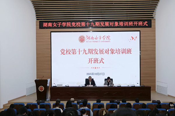 本网讯(信息科学与工程学院 吴婷)2025年10月27日晚,湖南女子学院党校第十九期发展对象培训班开班仪式在求实楼三楼学术报告厅隆重举行。组织部常务副部长兼党校常务副校长周少四出席并讲话,组织科科长陈梦云主持开班式,各二级党组织书记及151名学员参加。